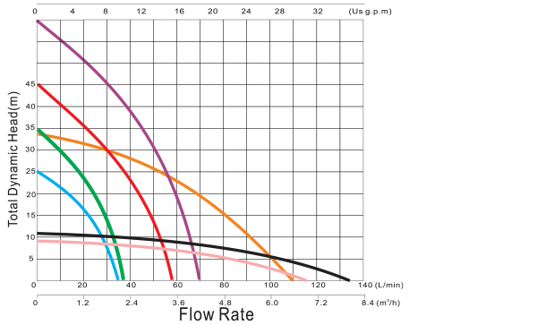 | TYPE | VOLTAGE | POWER | MAX FLOW | MAX HEAD | OUTLET | DIAMETER |